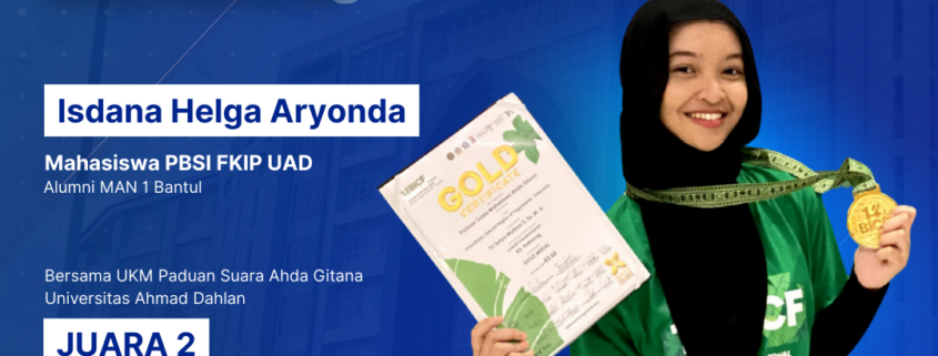 Bali, 2 Agustus 2025 – Kabar membanggakan datang dari Program Studi Pendidikan Bahasa dan Sastra Indonesia (PBSI) Fakultas Keguruan dan Ilmu Pendidikan (FKIP) Universitas Ahmad Dahlan (UAD). Salah satu mahasiswanya, Isdana Helga Aryonda, berhasil mengharumkan nama kampus dan prodi dengan meraih Juara 2 dalam ajang 14th Bali International Choir Festival (BICF) 2025, kategori Choir Championship Folksong.