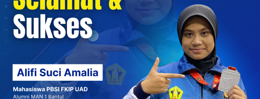 Alifi Suci Amalia, mahasiswi PBSI FKIP UAD, sukses meraih Juara 2 dalam ajang Kejuaraan Nasional Taekwondo Wali Kota Cup XII Tahun 2025, untuk kategori Poomsae Senior Putri. Kejuaraan ini berlangsung di GOR Amongrogo, Kota Yogyakarta, pada tanggal 2–3 Agustus 2025, dan diikuti oleh 750 atlet taekwondo dari berbagai daerah di Indonesia.