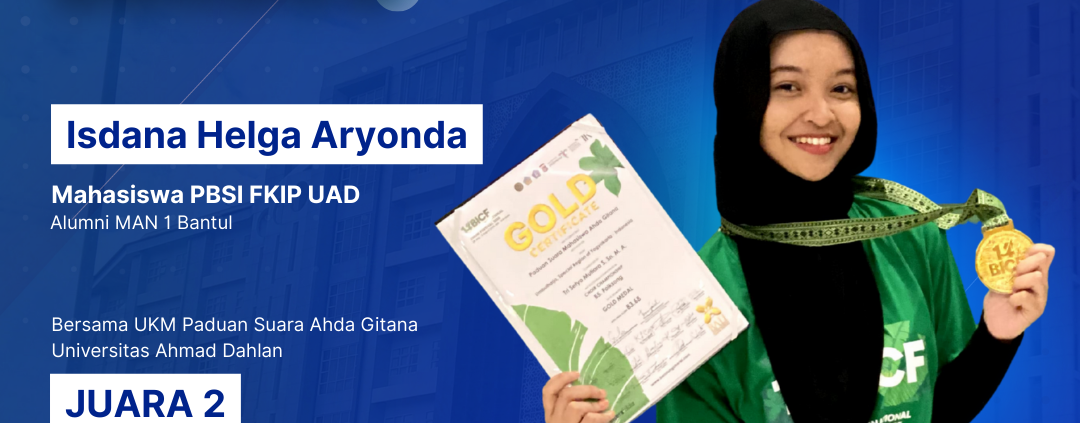 Bali, 2 Agustus 2025 – Kabar membanggakan datang dari Program Studi Pendidikan Bahasa dan Sastra Indonesia (PBSI) Fakultas Keguruan dan Ilmu Pendidikan (FKIP) Universitas Ahmad Dahlan (UAD). Salah satu mahasiswanya, Isdana Helga Aryonda, berhasil mengharumkan nama kampus dan prodi dengan meraih Juara 2 dalam ajang 14th Bali International Choir Festival (BICF) 2025, kategori Choir Championship Folksong.