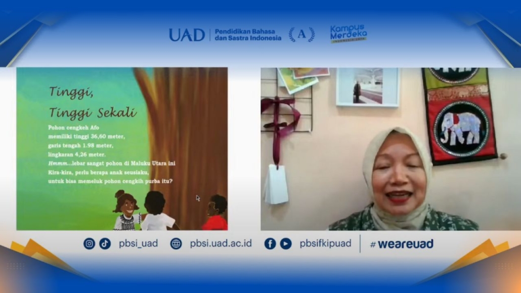 Yogyakarta, 18 Desember 2024 – Program Studi Pendidikan Bahasa dan Sastra Indonesia (PBSI) Universitas Ahmad Dahlan (UAD) bekerja sama dengan Himpunan Sarjana-Kesusastraan Indonesia (HISKI) Komisariat UAD menggelar kuliah tamu bertajuk “Sastra Anak: Jembatan Peradaban dan Pembangunan Berkelanjutan”. Acara berlangsung pada Rabu (18/12) pukul 09.00 WIB melalui platform Zoom Meeting dan disiarkan secara langsung melalui kanal Zoom Live.