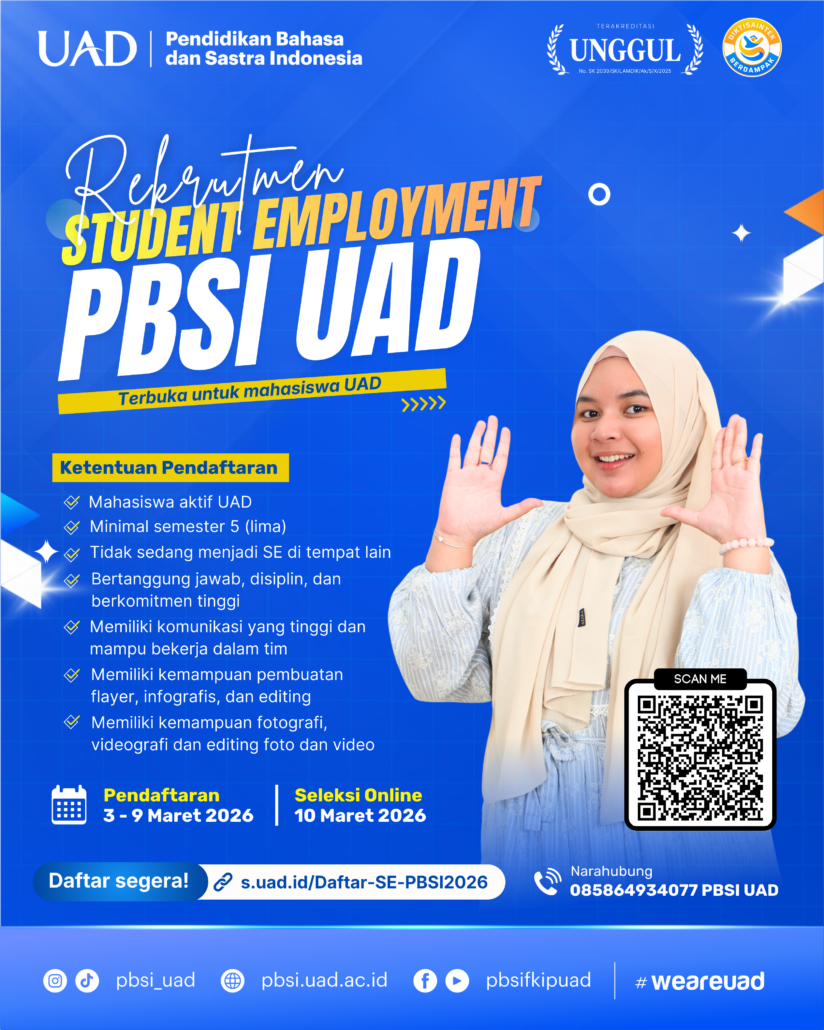 Kesempatan terbuka bagi mahasiswa aktif UAD untuk bergabung menjadi bagian dari Student Employment Program Studi Pendidikan Bahasa dan Sastra Indonesia.